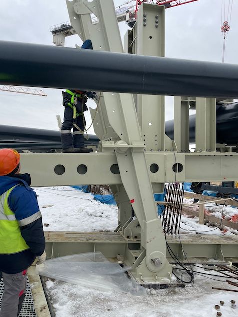 24-26 февраля ООО «СК «КМ-Центр», совместно с партнерами, выполнило подъем укрупненной фермы в вертикальное положение при помощи гидравлических кантователей